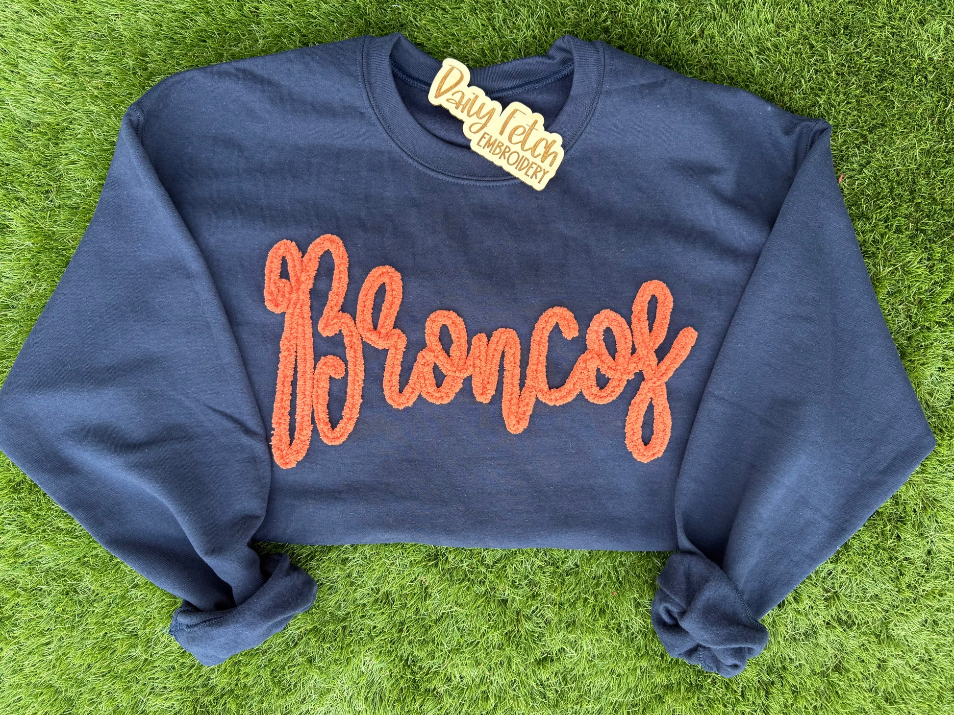 Stay warm and show your team spirit with our Broncos Yarn Embroidered Sweatshirt.