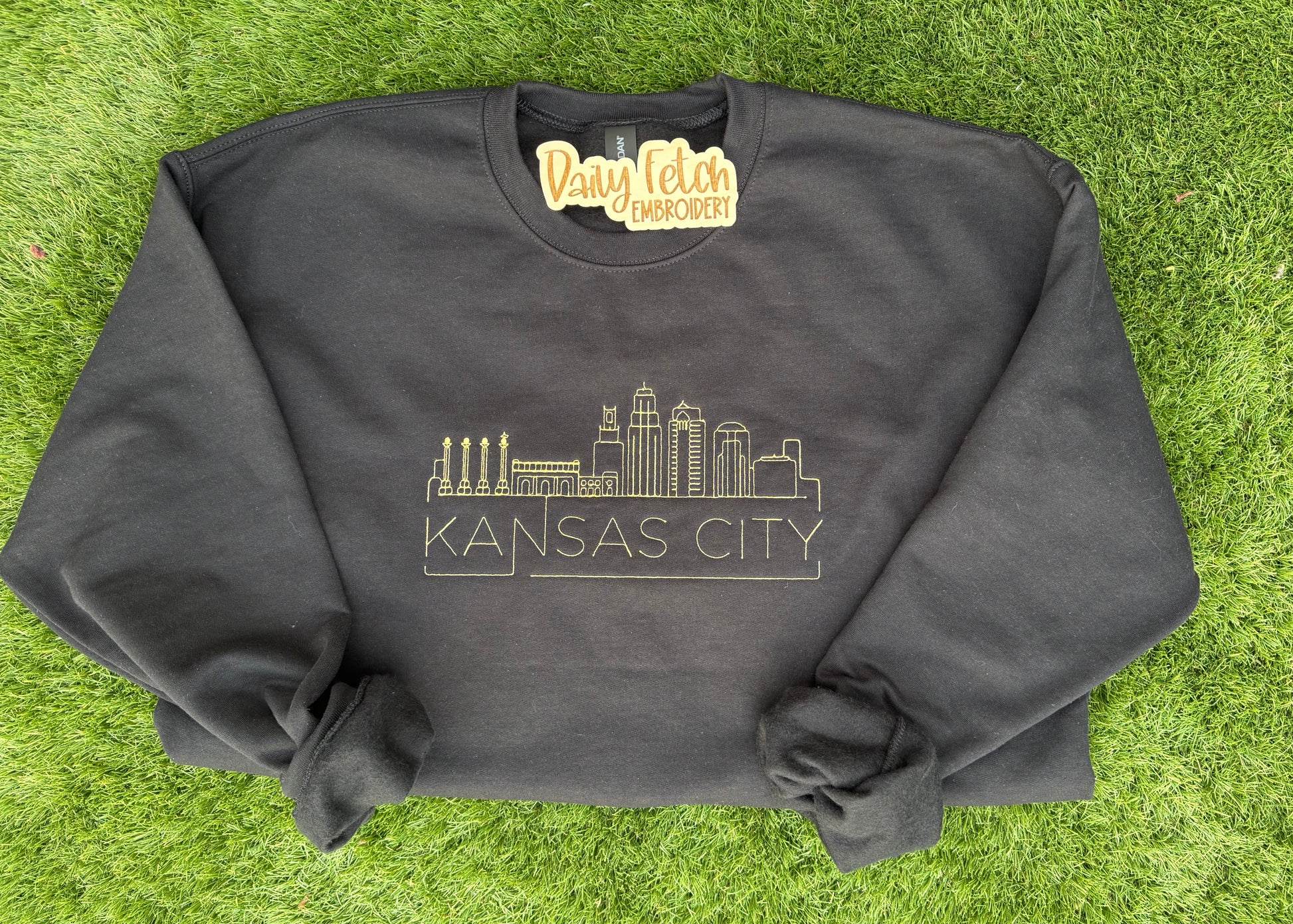 Take home a piece of Kansas City with our KC Skyline Embroidered Sweatshirt! Featuring the iconic skyline of the city, this sweatshirt is perfect for showing off your love for the city while staying warm and comfortable. Made with high-quality material, our sweatshirt is not only stylish but also durable. Get yours today and represent the city in style!