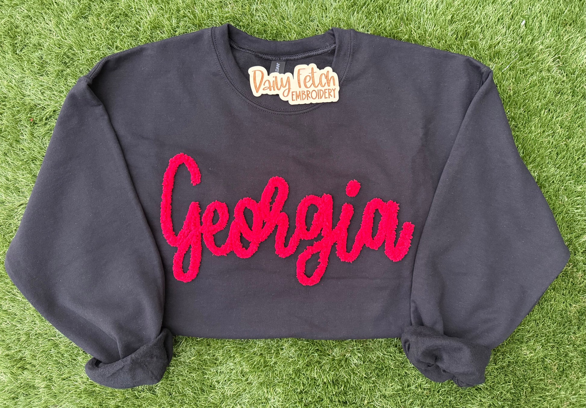 Stay warm and show your state spirit with our Georgia Yarn Embroidered Sweatshirt.