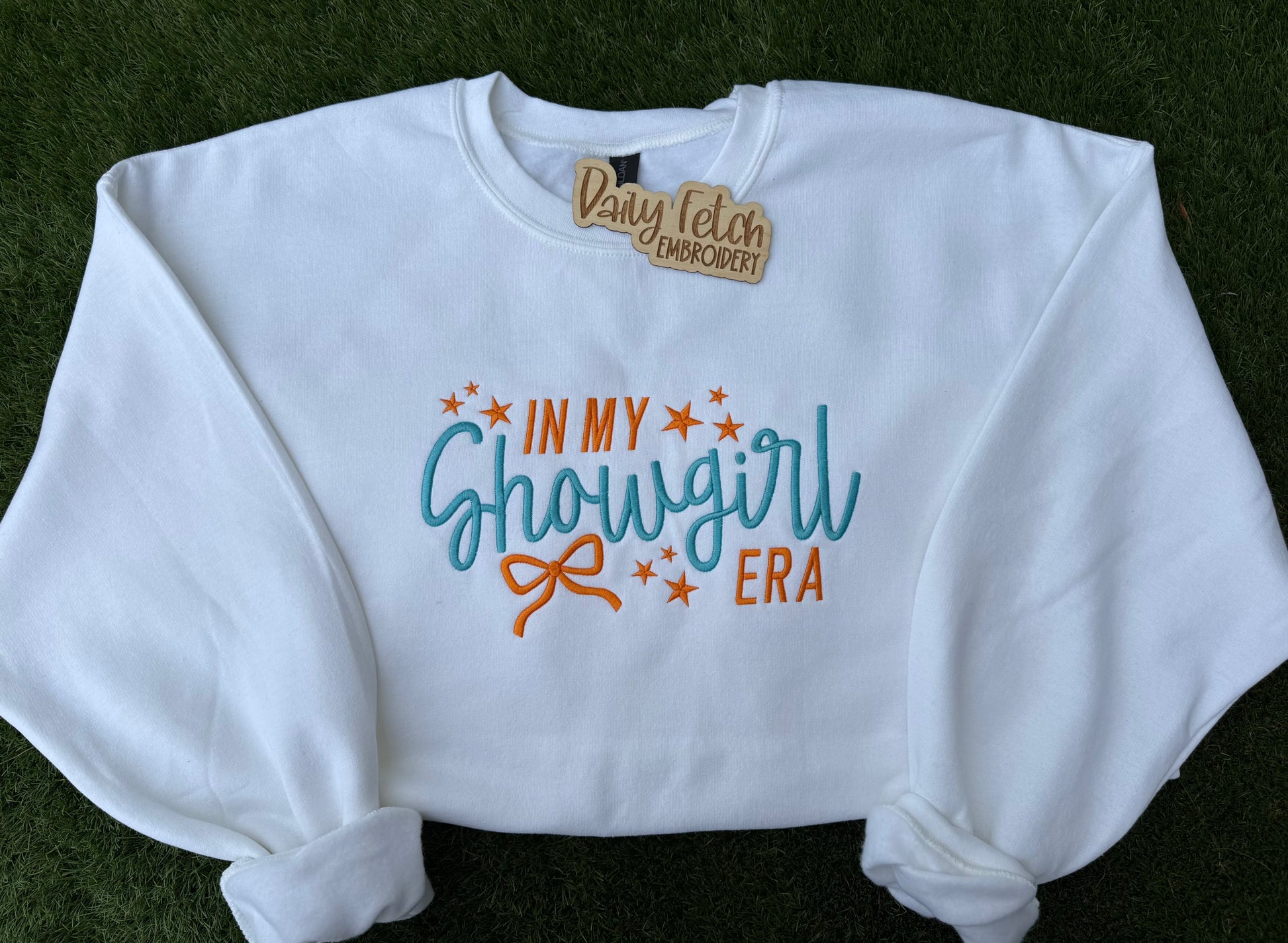 Introducing the Showgirl Era Crew, inspired by the iconic style of T-Swift showgirl era. This crewneck shirt showcases timeless fashion with a modern twist. With its chic design and comfortable fit, it's the perfect choice for any music lover looking to make a statement.