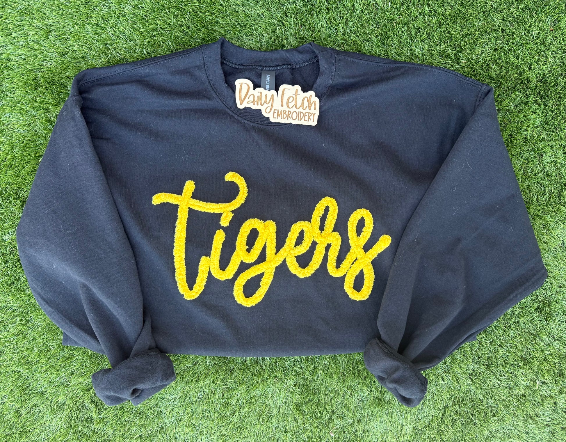 Stay warm and show your team spirit with our Tigers Yarn Embroidered Sweatshirt.
